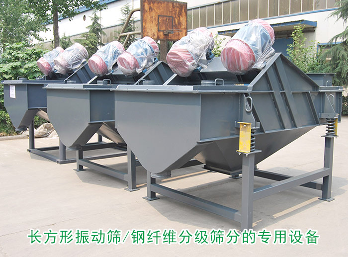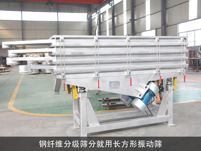 鋼纖維是指以切斷細鋼絲法、冷軋帶鋼剪切、鋼錠銑削或鋼水快速冷凝法制成長徑比(纖維長度與其直徑的比值,當纖維截面為非圓形時,采用換算等效截面圓面積的直徑)為40~80的纖維。今天小編就來大家介紹一下這款適合鋼纖維篩分的長方形振動篩有哪些優(yōu)勢?