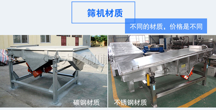 煙草直線振動篩主要有碳鋼不銹鋼兩種,材質不同的煙草直線振動篩在價格上也相差幾百到上千元不等。不銹鋼材質的直線振動篩更適合食品、醫藥篩分,對于煙草篩分衛生環境要求較高的企業也可以使用的不銹鋼直線振動篩,對于衛生環境要求不高的企業碳鋼材質的直線振動篩就可以滿足您的要求,價格上也會比不銹鋼的便宜不少。