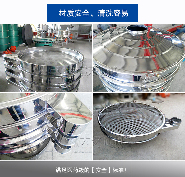 醫藥振動篩采用不銹鋼材質精制而成,具有良好的防腐蝕防銹功能,也可耐高溫,內外拋光打磨處理,內部無焊接點,表面平整無凹陷或高低起伏的波浪面,無扭曲變形的現象,增加篩分后清洗消毒的難度,這個特點也可滿足醫藥行業的篩分要求。不銹鋼材質中含有金屬鎳,可以抵抗大氣中的腐蝕,大大增加了它的耐用性。安全性高使用壽命長。